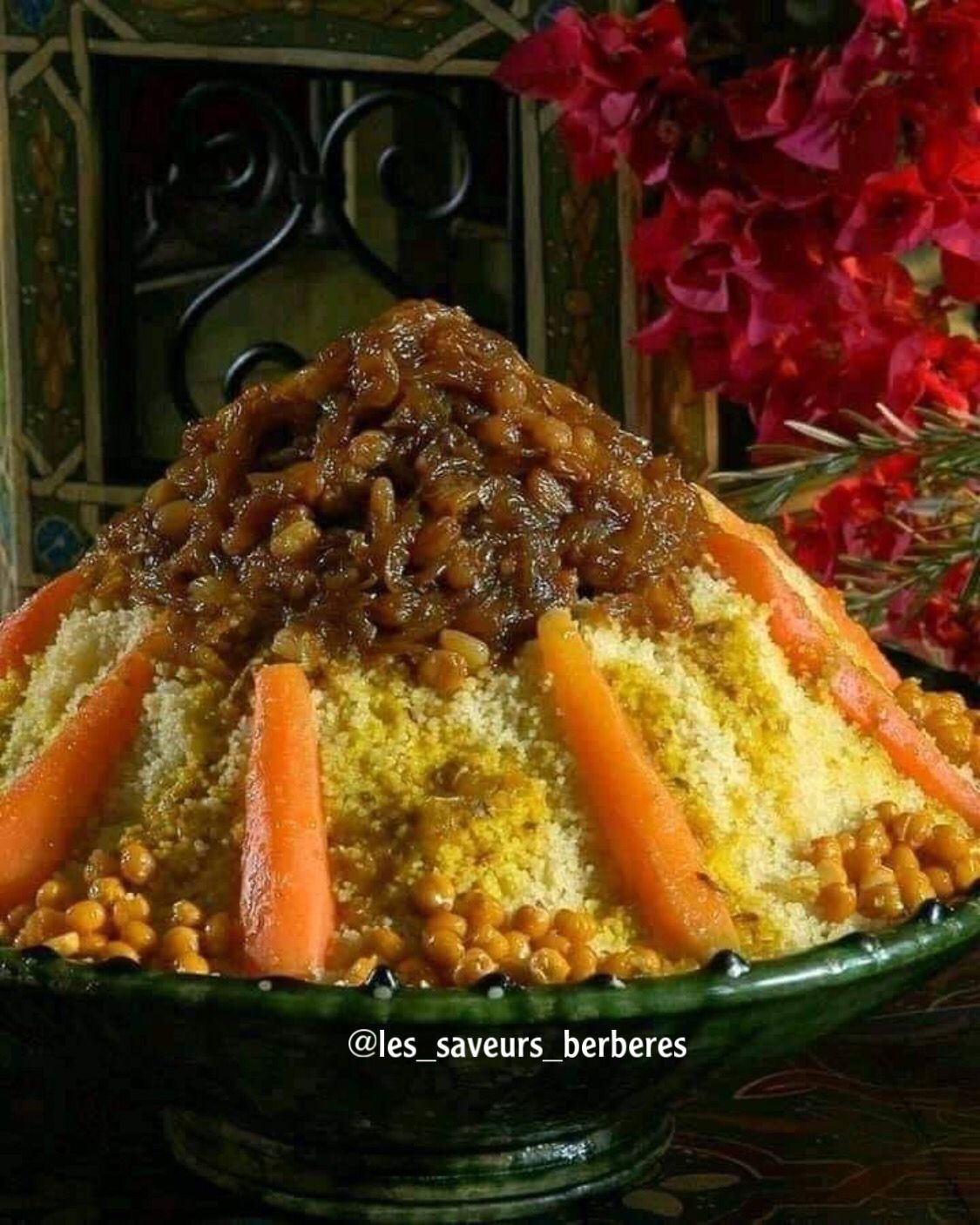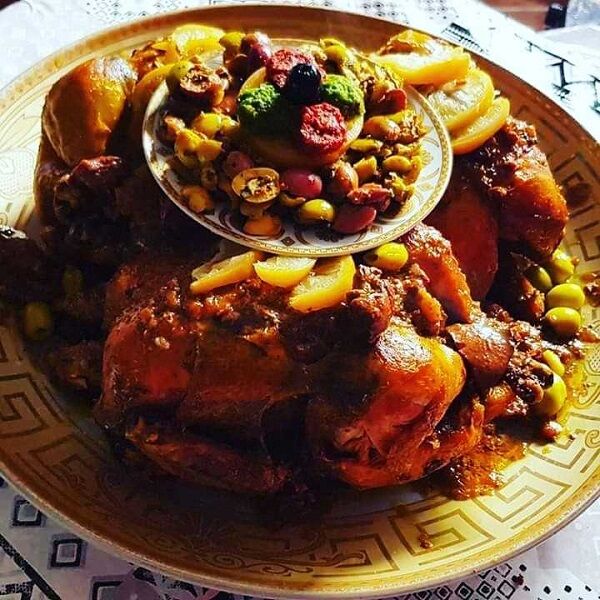 Le tajine est un plat dominant de la cuisine au Maghreb, en particulier au Maroc. Il s'agit à l'origine d'un plat berbère : une sorte de ragout, dans lequel les légumes et la viande sont cuits à l'étouffée. Le mot tajine désigne le plat en terre cuite dans lequel les aliments sont cuits.